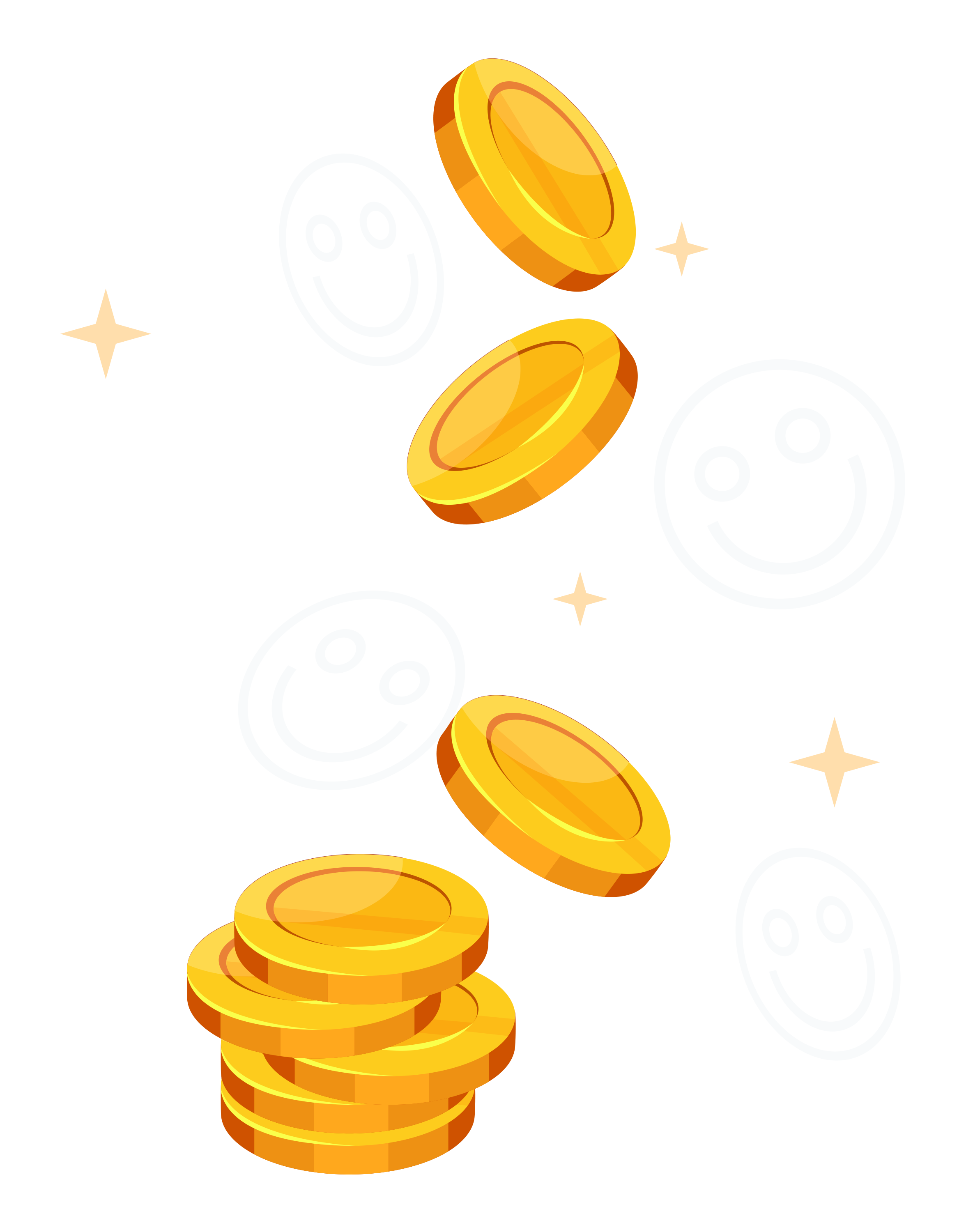 Картинка с золотыми монетами и смайлами без фона в PNG формате. Весёлый и яркий дизайн идеально подойдёт для оформления игровых интерфейсов, приложений, баннеров, постов в социальных сетях или инфографики на тему денег, бонусов и виртуальной валюты. Прозрачный фон позволяет быстро и удобно интегрировать изображение в любой фон, сохранив качество и стиль. Отличный вариант для дизайнеров и маркетологов, которые создают креативные проекты.